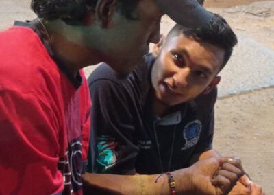 Brindamos alimentación, ropa, productos de higiene y un espacio de escucha, confiando en que el Espíritu Santo nos guíe para ofrecerles un camino hacia la reintegración social.